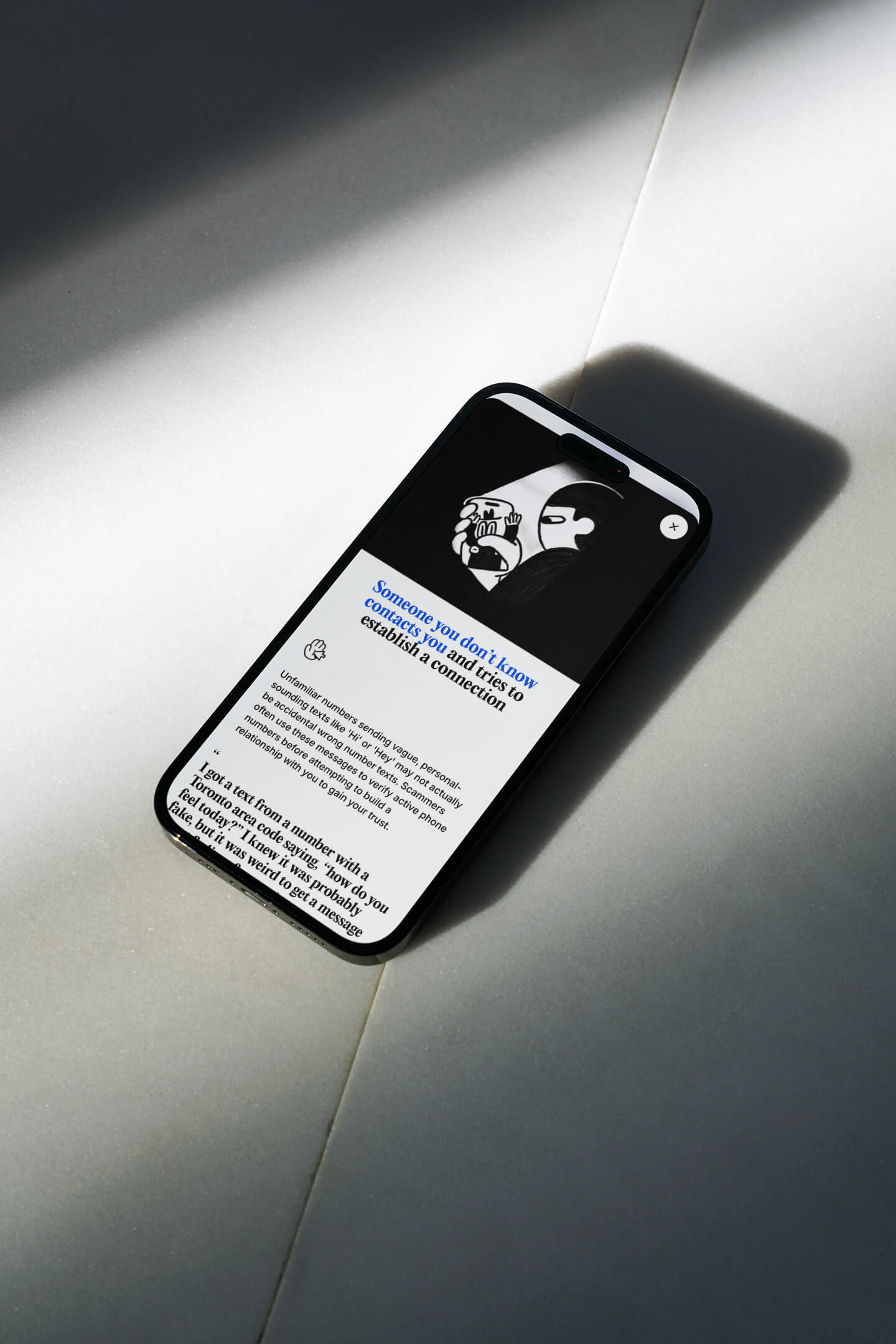 Instead of focusing on the worst case scenarios, we focused on everyday avoidance of scams. We wanted to prepare people to spot a scam, no matter what form it might take. No scare tactics. Just smart habits.