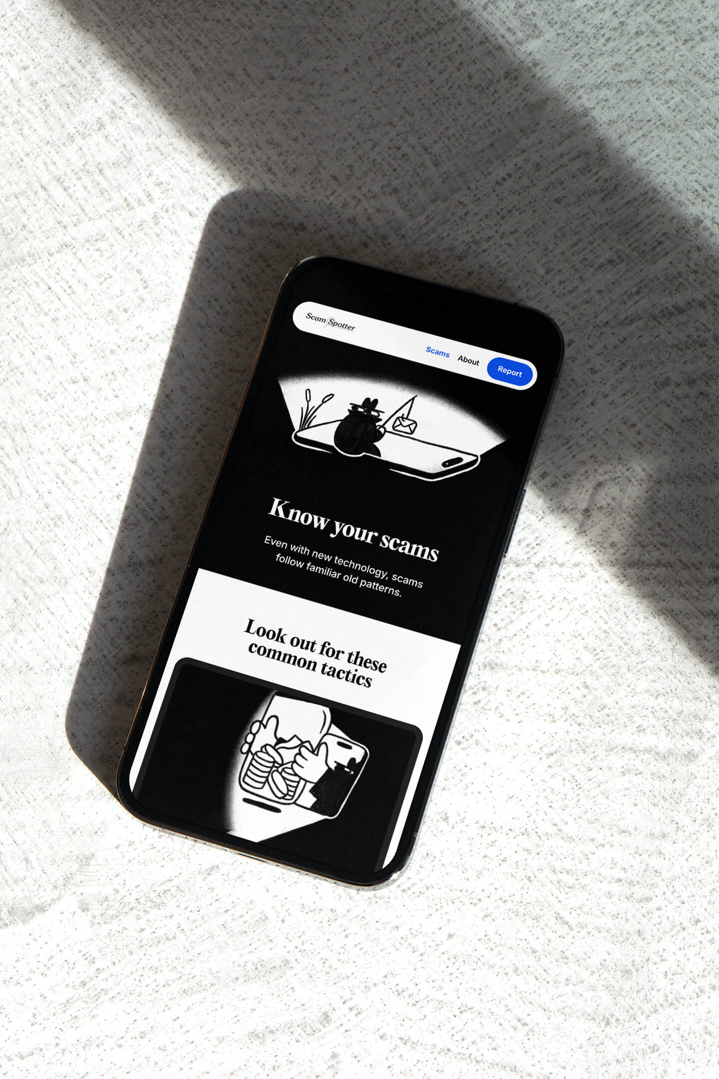 Scam Spotter is a consumer outreach initiative from FightCybercrime and Google to help fight scams. Its goal is to raise awareness, provide easy to understand information and stop people from getting scammed. We worked alongside Sandy Russell Creative to create the brand identity, website, and a series of animated videos to bring the initiative to life.