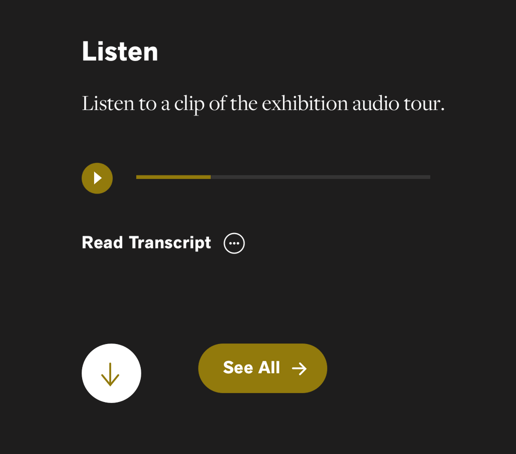 Every element of Insights was built for extensibility, allowing the platform to grow and change as the museums’ collections evolve. We created a robust component gallery that each emphasized different elements of the art. While some offered deep historical context, others brought users in close to look at the details of the artwork. Used together, this toolkit allows the curators to customize the pace and structure of the story they develop; arranging the components one way, they might tell one story, but rearranged another way visitors see something completely different.