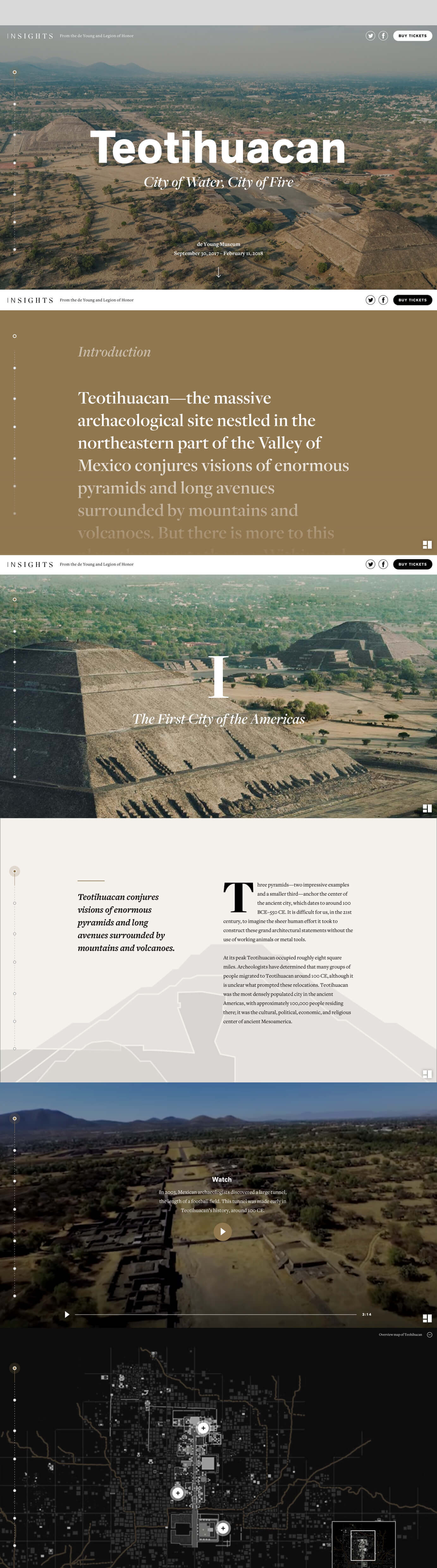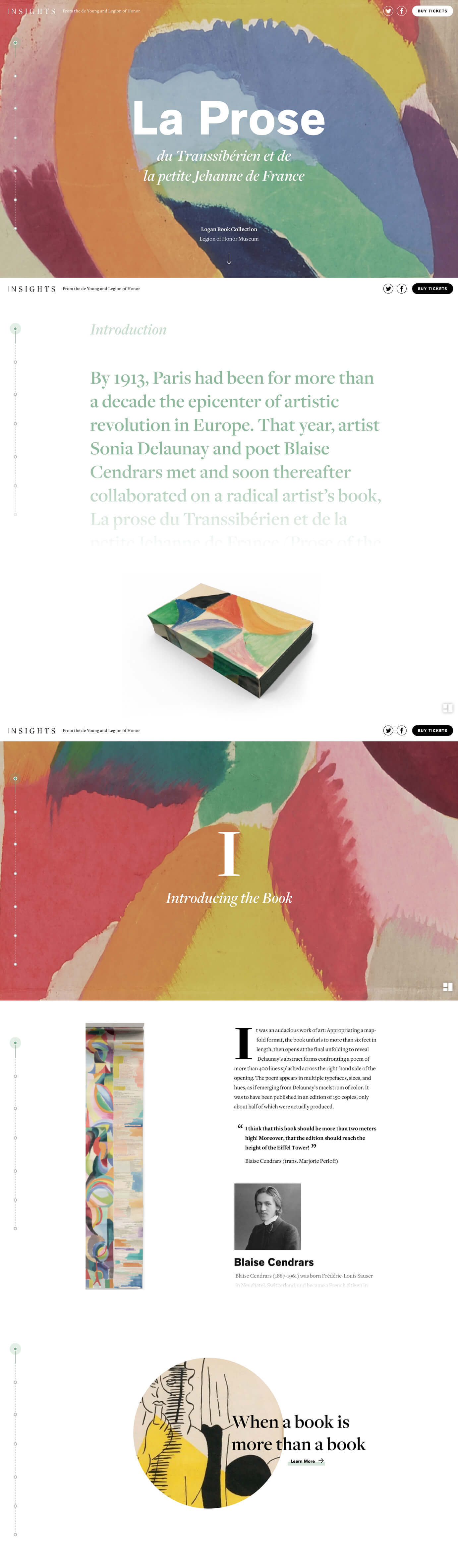 The Fine Arts Museums of San Francisco oversees two unique museums - the de Young in Golden Gate Park and the Legion of Honor in Lincoln Park - and stands as one of the most visited arts institutions in the United States. We worked with their team to create Insights, an immersive digital platform that showcases their permanent collections and special exhibitions.